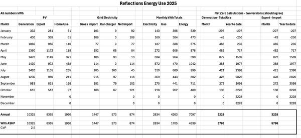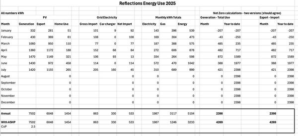 What is also becoming clear is that the gas usage, particularly for hot water (and possibly towel rails), is far higher than envisaged. Net zero in kWh with gas is unlikely to work.
